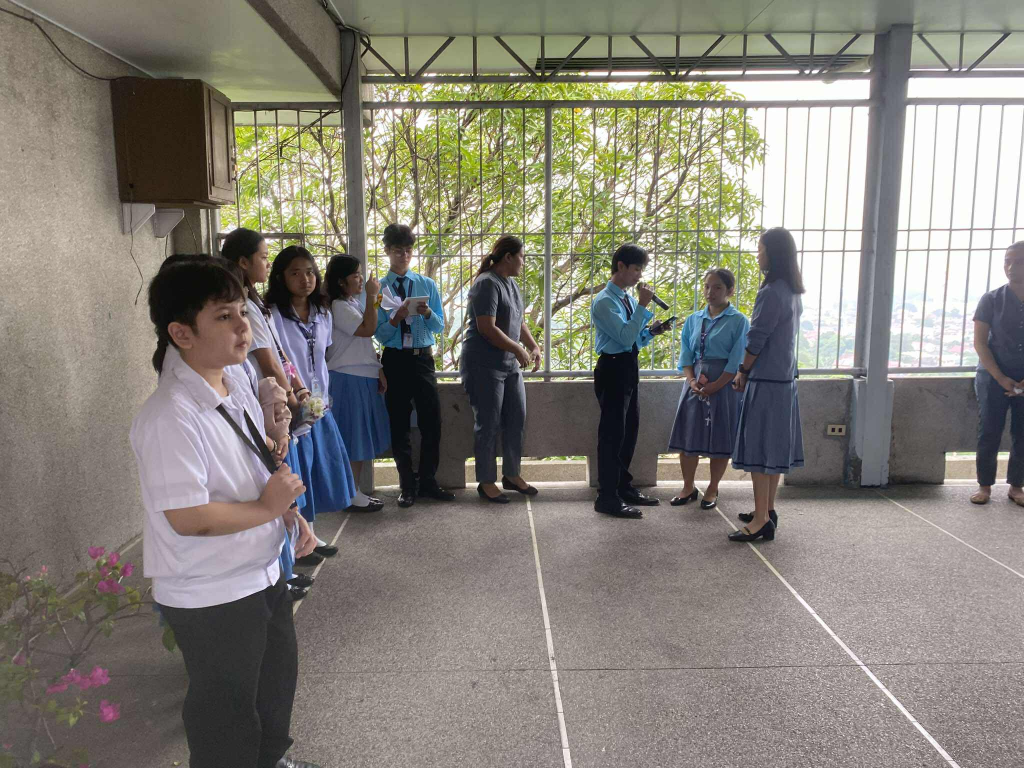 Yesterday, in celebration of the Nativity of the Blessed Virgin Mary, the High School Department came together in a beautiful expression of faith through a Living Holy Rosary and floral offerings.